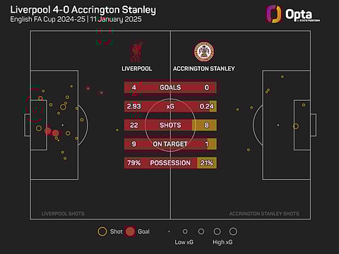 Albeit against League Two opposition, the Reds went astutely about their business, registering an expected goals (xG) total of 2.93 from their 22 efforts, while also enjoying 78.7% possession.