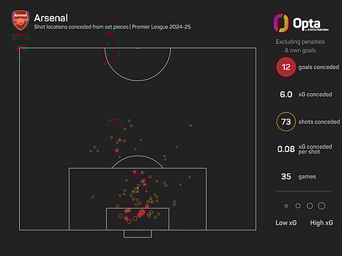 39% of Arsenal's goals conceded in the Premier League this season have come from set-piece situations (12/31, excluding penalties), the highest share of any side.