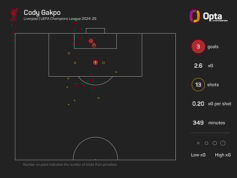 Gakpo has impressed in the Champions League this term, with only talisman Mohamed Salah (seven) registering more goal involvements than the Dutchman (four).
