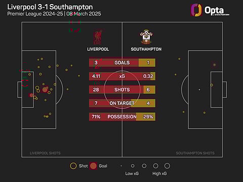 While Southampton stay bottom on nine points, Liverpool hold a huge advantage over second-placed Arsenal, who face Manchester United and Chelsea in their two games in hand in the next eight days.