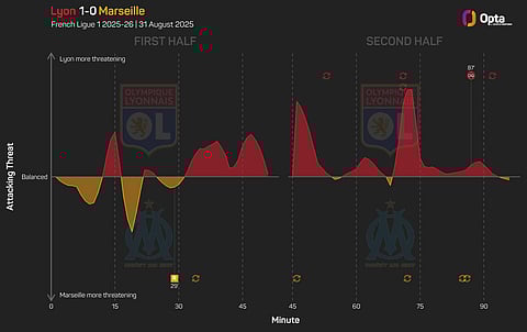 Despite Lyon dominating, Marseille kept it goalless until the 87th minute, only for captain Leonardo Balerdi to put through his own net following a goalmouth scramble that saw Nicolas Tagliafico hit the crossbar and Pavel Sulc denied on the line.