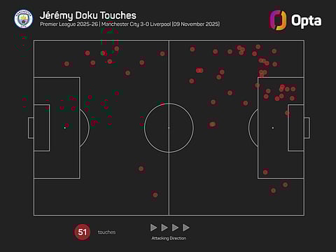 Doku, though, was the star of the show, getting all three of his shots on target, while leading the way for touches in the opposition box (11) and completing seven of his 10 dribble attempts.