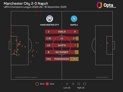 Napoli were only able to muster an expected goals (xG) figure of 0.17 from their one attempt at Gianluigi Donnarumma's goal, compared to City's 2.18 from their 23 attempts.