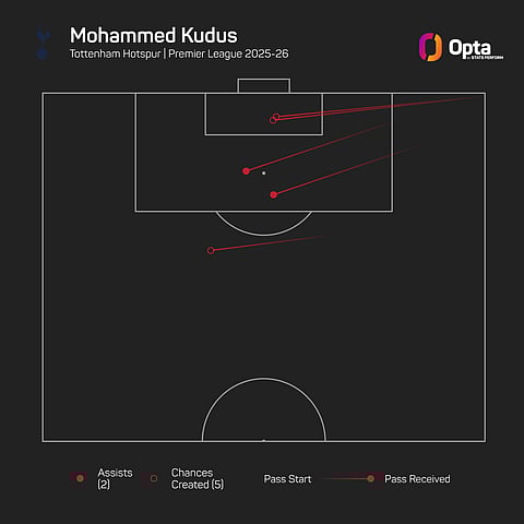 On the opening weekend, only Pedro Neto attempted more crosses (12) than Kudus (10), while his five chances created were the joint-most, along with Burnley's Josh Cullen and Man Utd's Bruno Fernandes.