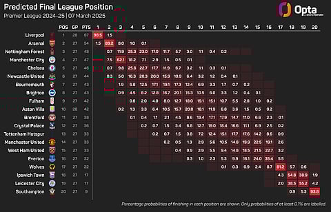 They are given just a 5% chance of finishing in the top half this season by the Opta supercomputer, and most commonly finish 15th in the season simulations (22.5%).