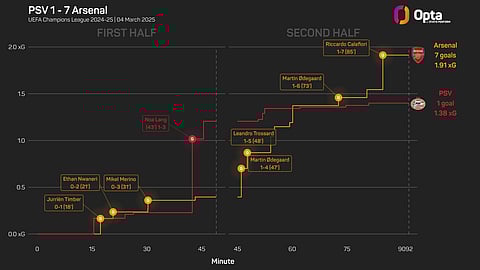 No player has scored more goals for Arsenal in 2025 than Nwaneri (four - level with Mikel Merino), while his strike against PSV in the Champions League on Tuesday saw him become the third-youngest player to score a knockout stage goal in the competition (17 years and 348 days).