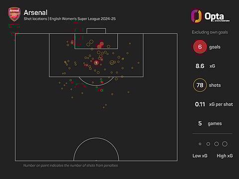 Arsenal have scored six goals from 4.58 xG in their past two matches. Whereas under Eidevall the Gunners were missing chances with regularity, they have seemingly picked up their finishing under interim boss Slegers. They had scored four goals from 7.0 xG under Eidevall in their first four league matches.
