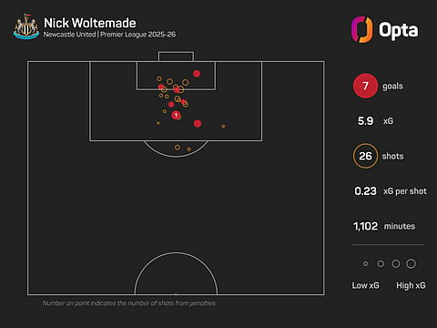 While Newcastle have performed on track against their expected goals figures – scoring 23 times from chances worth 23.7 xG – United have netted 31 times from 32.1 xG, which ranks second in the division.