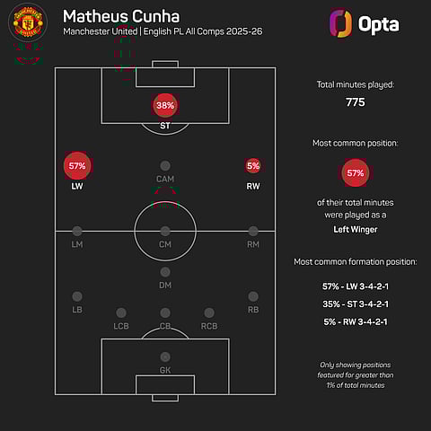 Amorim has used him as a false nine or a left and right-sided winger during his time at MUFC