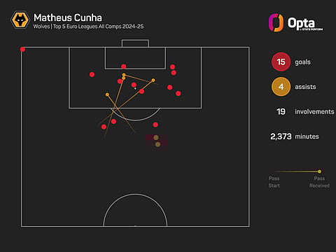 Cunha has been influential in their bid to stave off the drop, scoring 13 goals in 26 Premier League matches this term, with only Raul Jimenez ever netting more in a single campaign in the competition for Wolves (17 in 2019-20).