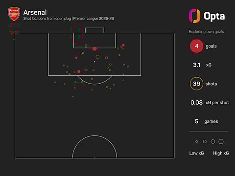 That is a lower figure than the 3.7 open-play xG created by pointless Wolves throughout their first four matches and ranks the Gunners 13th in the league. Newcastle have only managed 3.0 open-play xG.