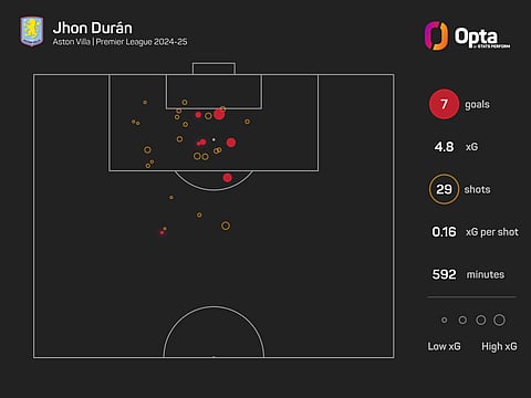 Duran is Villa's top scorer across all competitions, scoring 12 goals in 26 appearances, with three of those strikes coming in the Champions League this campaign.