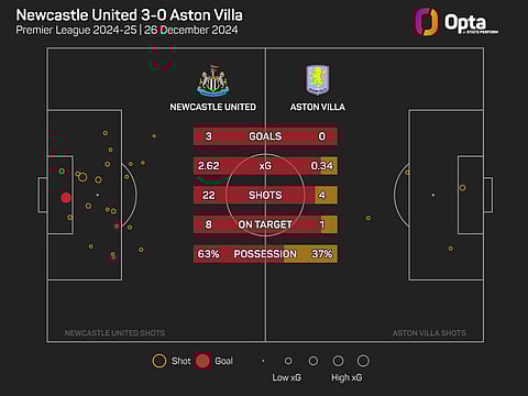 Villa always faced an uphill task with a numerical disadvantage, and Newcastle have now won three straight Premier League matches by three or more goals for the very first time.