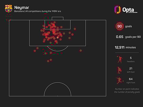 Messi registered a total of 219 goal involvements, with Suarez adding 180 and Neymar 138 for a remarkable total of 537 direct goal involvements from the trio.