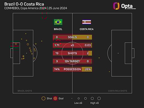Brazil failed to make their superiority count against Costa Rica, making more passes (695) than any other team across the first matchday of the competition, but only registered three shots on target from the 19 they attempted.