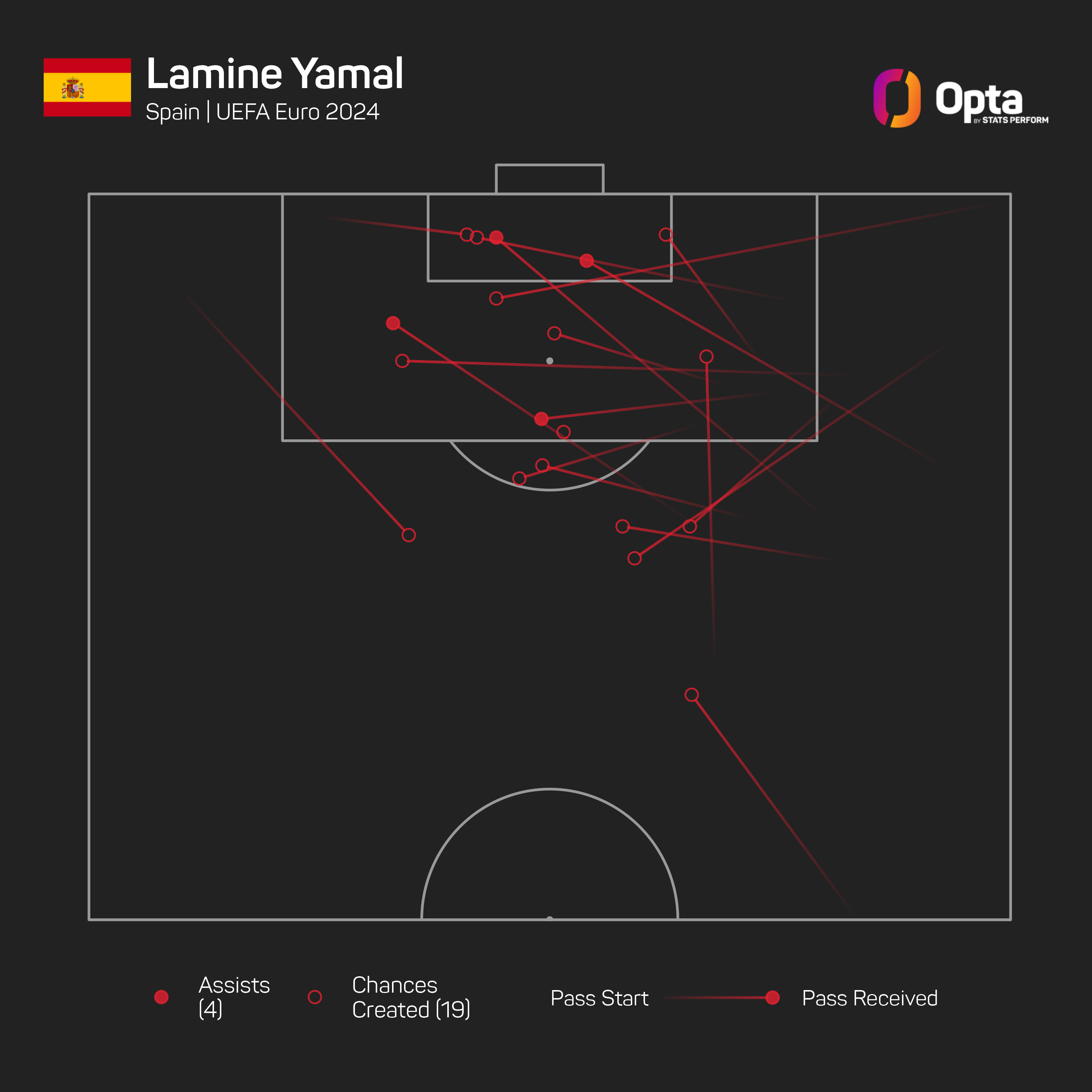 Yamal starred for La Roja at Euro 2024, tallying five goal involvements in seven appearances in Germany.