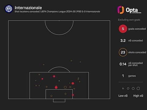 This was just the third time Inter had conceded five goals in any Champions League game, in 167 matches. They were also beaten 5-1 by Arsenal in 2003 and 5-2 by Schalke in 2011.