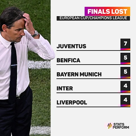 Inter became only the third team – and the first since Real Madrid lost 5-3 to Benfica in 1962 – to concede five goals in a European Cup or Champions League final on Saturday, as they were swatted aside at the Allianz Arena (also Real Madrid 7-3 Eintracht Frankfurt in 1960).