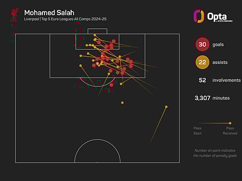 His total of 52 goal involvements is at least 12 more than any other player from Europe's top five leagues, with Barcelona's Raphinha on 40 (24 goals, 16 assists). PSG winger Ousmane Dembele is joint-seventh on that list with 26 goals and six assists.