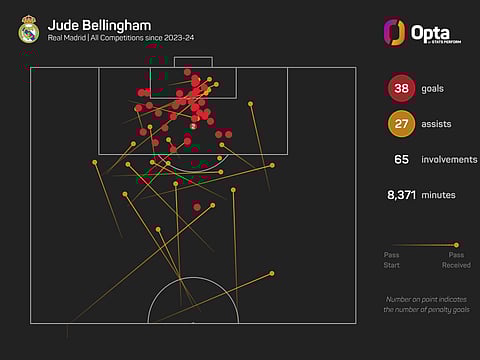 Bellingham has netted 38 goals across all competitions, including the opener in their 3-1 win over Pachuca in the Club World Cup group stage, while he has also provided 27 assists.