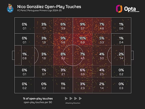 No player in the Portuguese top flight has won more tackles for Porto than Nico (19), while only Nehuen Perez (926) and Otavio (919) have completed more passes than the Spaniard (819).