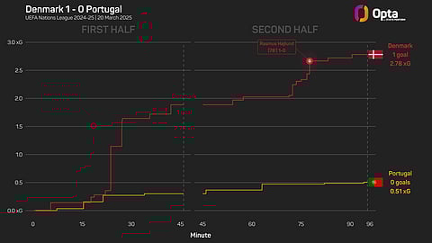 Portugal dominated possession against Denmark and came out on top in more of their duels, winning 34 to their hosts' 29.