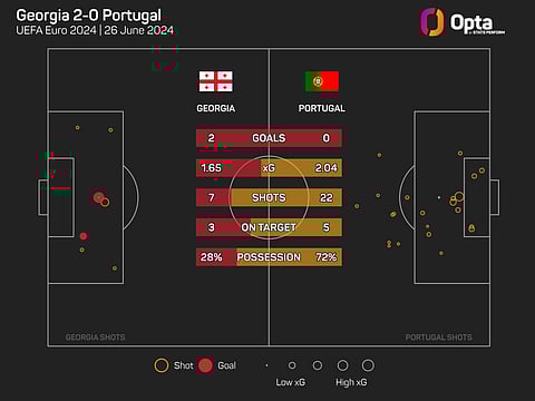Despite their slip-up against Georgia, which came with a much-changed starting lineup, Portugal ranked second for both possession share (67%) and total shots (53) in the group stage, behind Germany (69%, 57 shots).