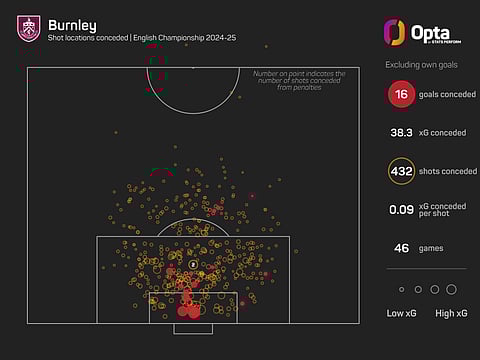 Burnley kept 30 clean sheets in 46 Championship matches, only conceding 16 goals as they finished second behind Leeds United.