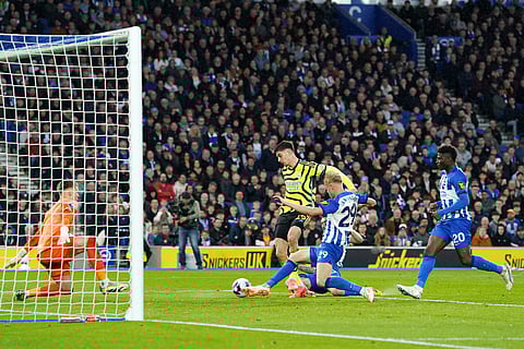 The result – Albion’s first top-flight home loss in more than seven months – puts Arsenal a point ahead of both Liverpool, who play their game in hand at rivals Manchester United on Sunday, and City.