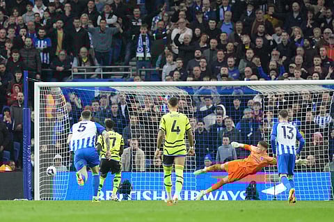 The England forward scored from the spot when Seagulls full-back Tariq Lamptey was penalised for bringing down Gabriel Jesus, despite brushing the top of the ball.