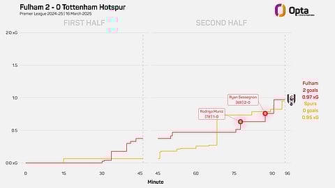 Sunday's meeting between Fulham and Tottenham at Craven Cottage took a long, long time to spark into life. In fact, it was not until the 69th minute that there was a real, clear-cut chance - Dominic Solanke firing over from close range.
