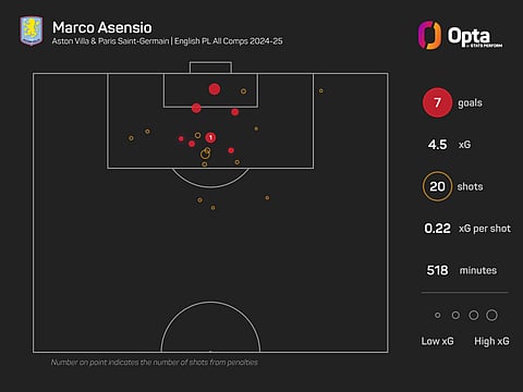 Asensio has also scored five of the seven 'big' chances that have fallen to him since making his Villa debut in February.