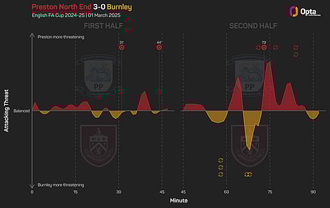 He scored with his only shot on target in that match but also made the most passes in the final third (15) and put in the most crosses (five) of any Preston player.