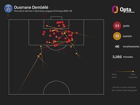 Dembele recorded 46 goal contributions (33 goals, 13 assists) in all competitions last term, a total only bettered by seven players across Europe's top five leagues.