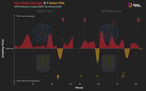 Villa defended deep in a bid to limit PSG to 2-1, but Nuno Mendes' composed finish gave Luis Enrique's men additional breathing room deep into stoppage time.
