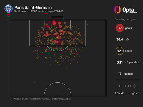 They top the European charts for expected goals (145.7), non-penalty xG (137), shots (1,097), shots on target (458) and big chances (288).
