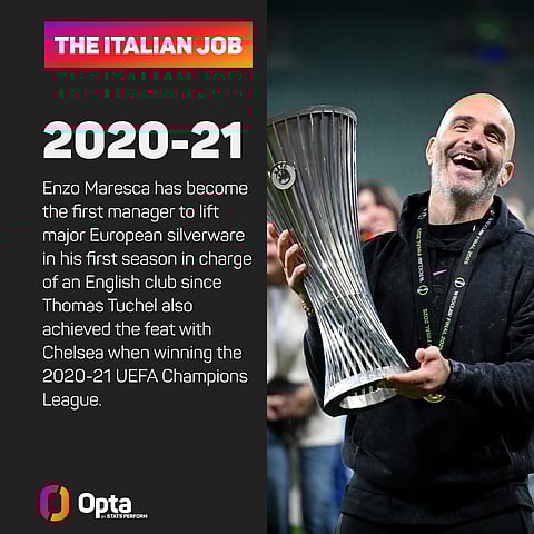Maresca, meanwhile, became the first manager to lift major European silverware in his first season in charge of an English club since Thomas Tuchel also achieved the feat with Chelsea when winning the 2020-21 UEFA Champions League.