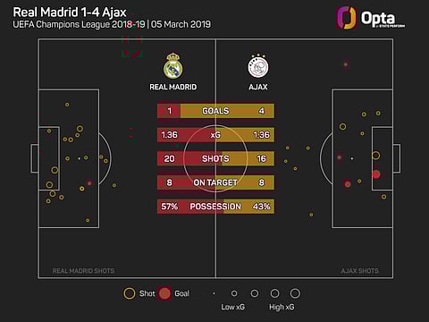That was more than three times as many as Madrid managed, with Los Blancos' tally of 36 representing the fewest of any team involved in this season's quarter-final first legs.