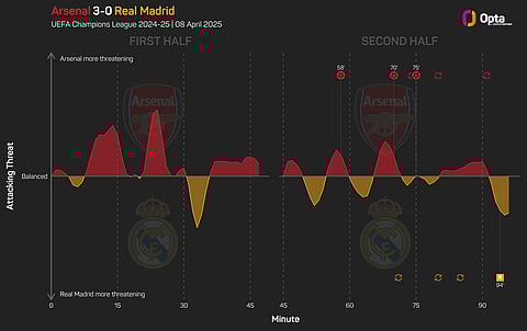 In the first leg, Arsenal were just too dynamic for their opponents, with Bukayo Saka beating David Alaba time and again while Rice dominated in midfield.