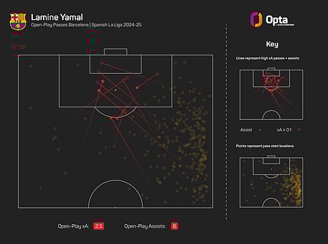 Three of the nine players in the big five European Leagues to be involved in 10 or more goals this season, meanwhile, represent Barcelona: Robert Lewandowski (12 goals, two assists), Lamine Yamal (four goals, six assists) and Raphinha (five goals, five assists).