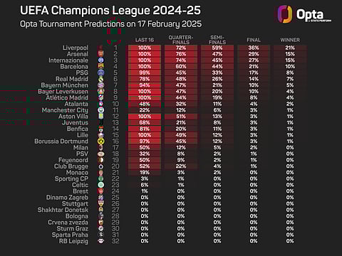The Opta supercomputer assigns City a 28.6% chance of victory in 90 minutes at the Bernabeu, but just a 21.8% chance of reaching the last 16.