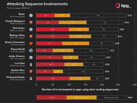 He also contributed eight goals and nine assists in the Premier League last term, both of which represent his best figures in any league campaign.