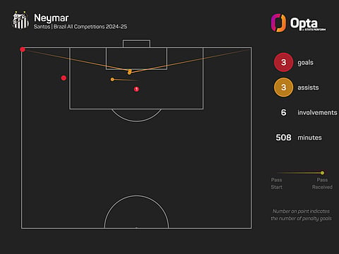 He then returned to Santos in January, making 14 appearances in all competitions, while scoring three goals and registering three assists.
