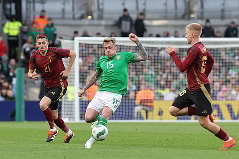 Ireland could, and probably should, have won the game after being awarded a first-half penalty, only for 19-year-old striker Evan Ferguson to slip as he attempted to beat keeper Matz Sels, who blocked with his legs.