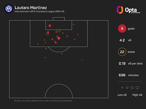 Martinez has eight Champions League goals for Inter this season, with that team-high figure coming from chances worth just 4.2 expected goals (xG).