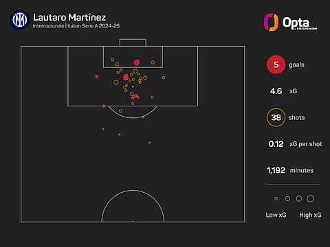 Martinez is performing around what would be anticipated based on the quality of chances he has had this season, with his six goals coming from 5.7 expected goals.