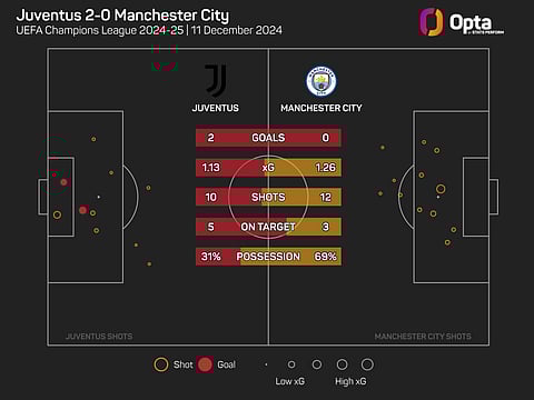 The Bianconeri's triumph came despite them only having 31% of possession – only once previously on record (since 2003-04) have they won a Champions League game while having a lower share of possession (27% versus Chelsea in September 2021).