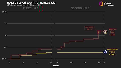 Inter's 573-minute run without conceding a goal in the Champions League ended when Nordi Mukiele scored for Leverkusen in the 90th minute on Tuesday.