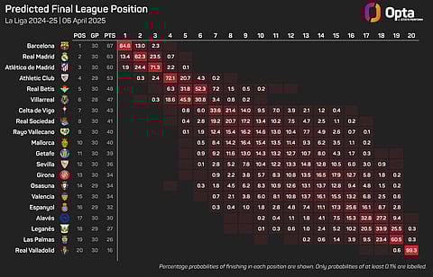 Atletico are handed just a 1.9% chance of winning the title by the Opta supercomputer, but Simeone has confidence in his players that they can catch the top two.
