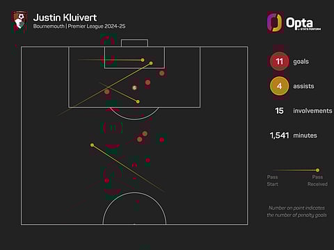 Only Mohamed Salah and Alexander Isak have scored more Premier League goals away from home this season than Kluivert (nine).